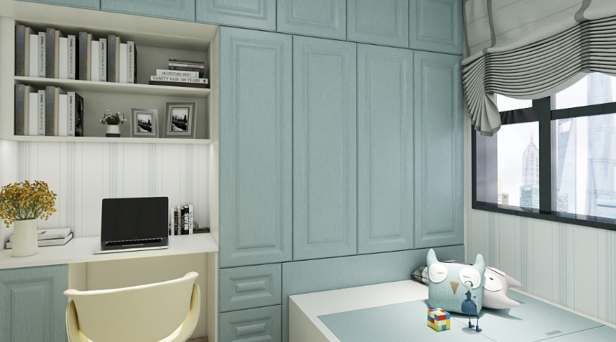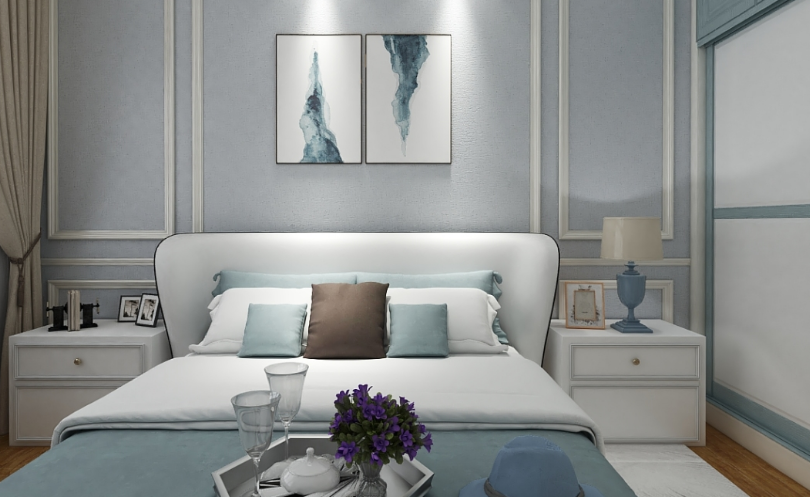 簡約的現代歐式風格,加入現代流行元素,營造出典雅休閑的小資情調,顏色的統一,有一種被安靜的藍色圍繞的感覺,安全又舒心。
