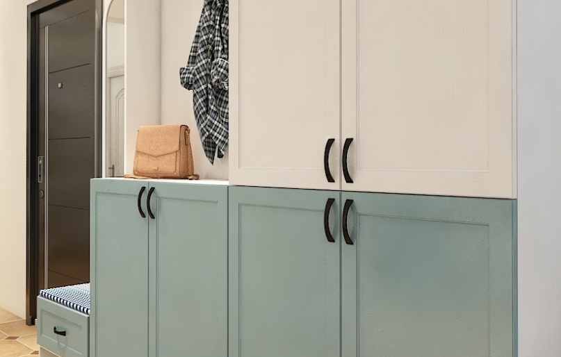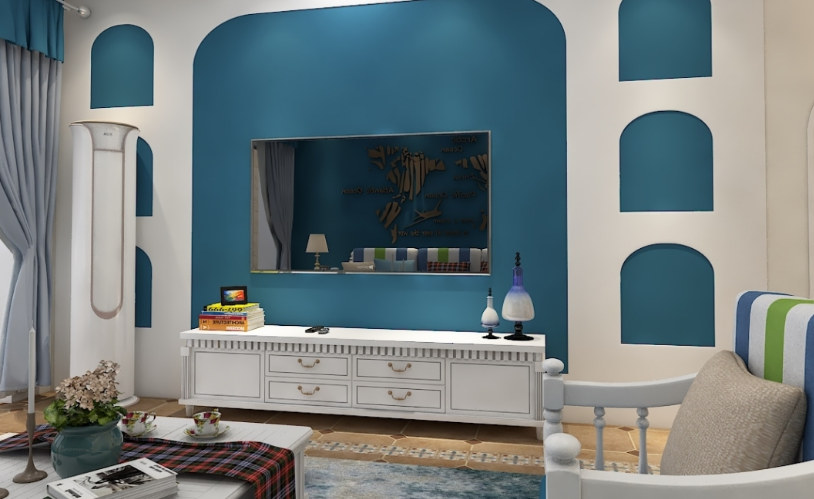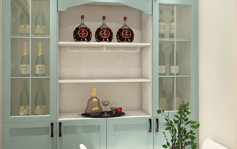 田園風格的家具主要色貼近生活的同時,也要具有美感,此方案設計大膽的選用了賞心悅目的藍綠搭配,視覺上十分吸引人,再加上柔和的色調和組合搭配很大氣。