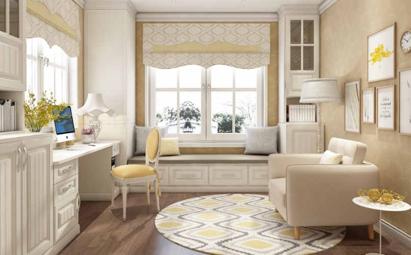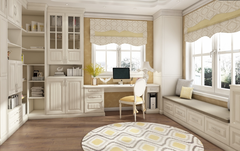 此書房主要以歐式高貴、大氣為主要設計理念展開的,每一次都充滿歐式家私的華貴,以及設計師的用心,營造出空間感和視覺享受的歐式空間,點綴的皮質和裝飾簡單而不單調,整個空間呈現出歐式的簡約華貴。