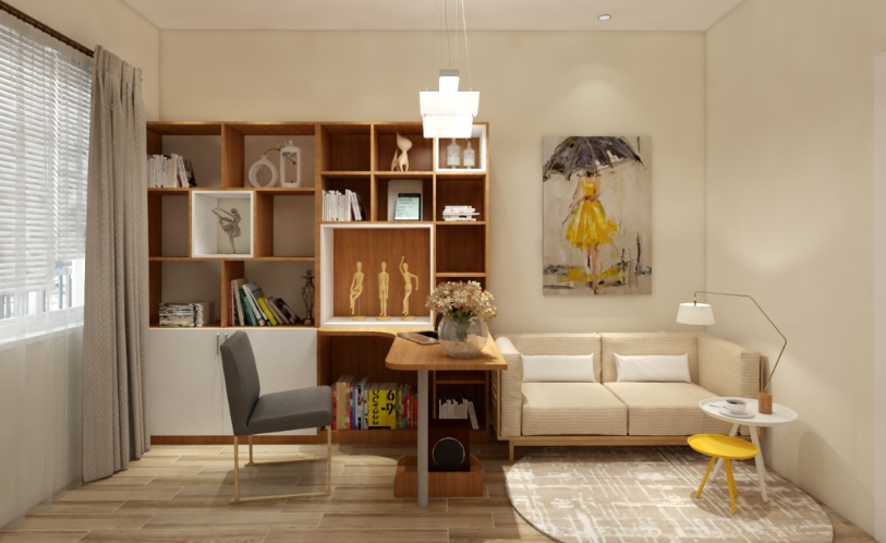主題以簡約為主,不同材質整體色調上卻極為相似,使得整個空間既溫馨舒適又覺得生機勃勃,壁畫顯得別具一格,使閱讀更有意義。