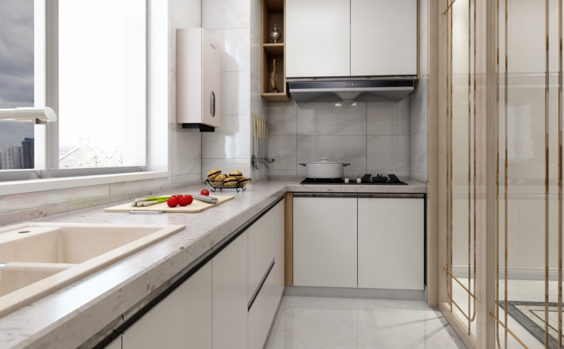 這個空間中,用溫暖而有溫度的木質和白色石材,使視覺色調上達到一種平衡,櫥柜設計合理,又不缺乏美感,空間布局張弛有度,氣度舒卷有致。