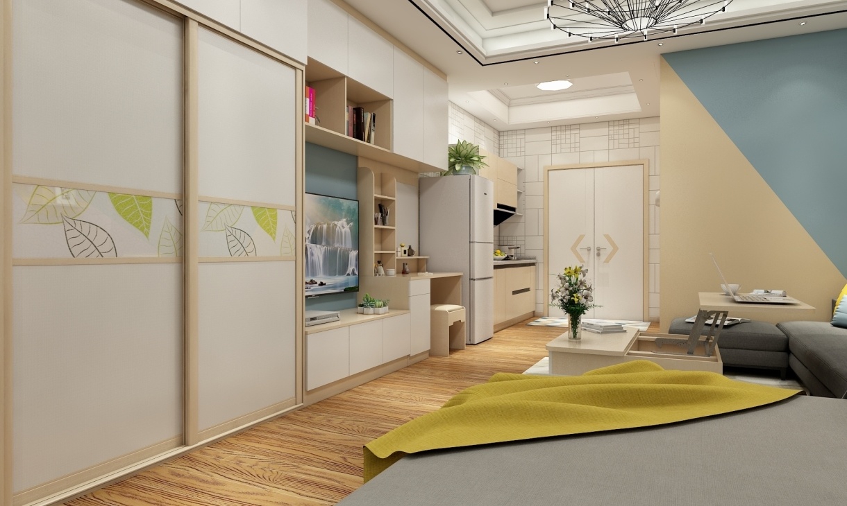 挪威森林單身公寓,清新舒適的空氣,恰到好處的陽光,可以拋開工作的繁瑣,每天都像在享受假期。本次設(shè)計打造了原木色系的挪威森林,能夠享受清爽的輕生活。在配色上采用浪漫的馬卡龍配色,充滿憧憬。整個房間夢幻又具有森林氣息。