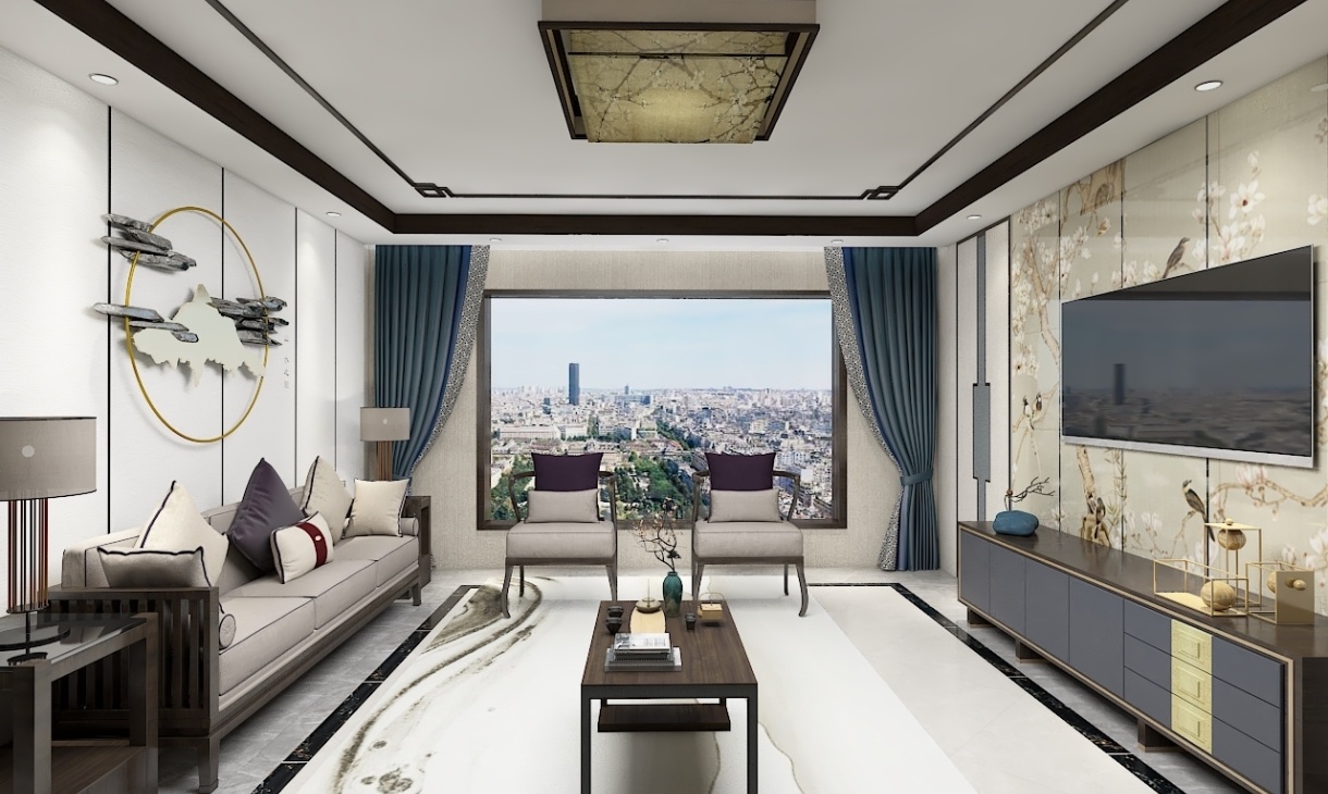 以大自然的格調灰為點綴,黑胡桃底蘊襯托出華夏傳統風,又不失現代極簡的大氣時尚,是新中式設計的典范。