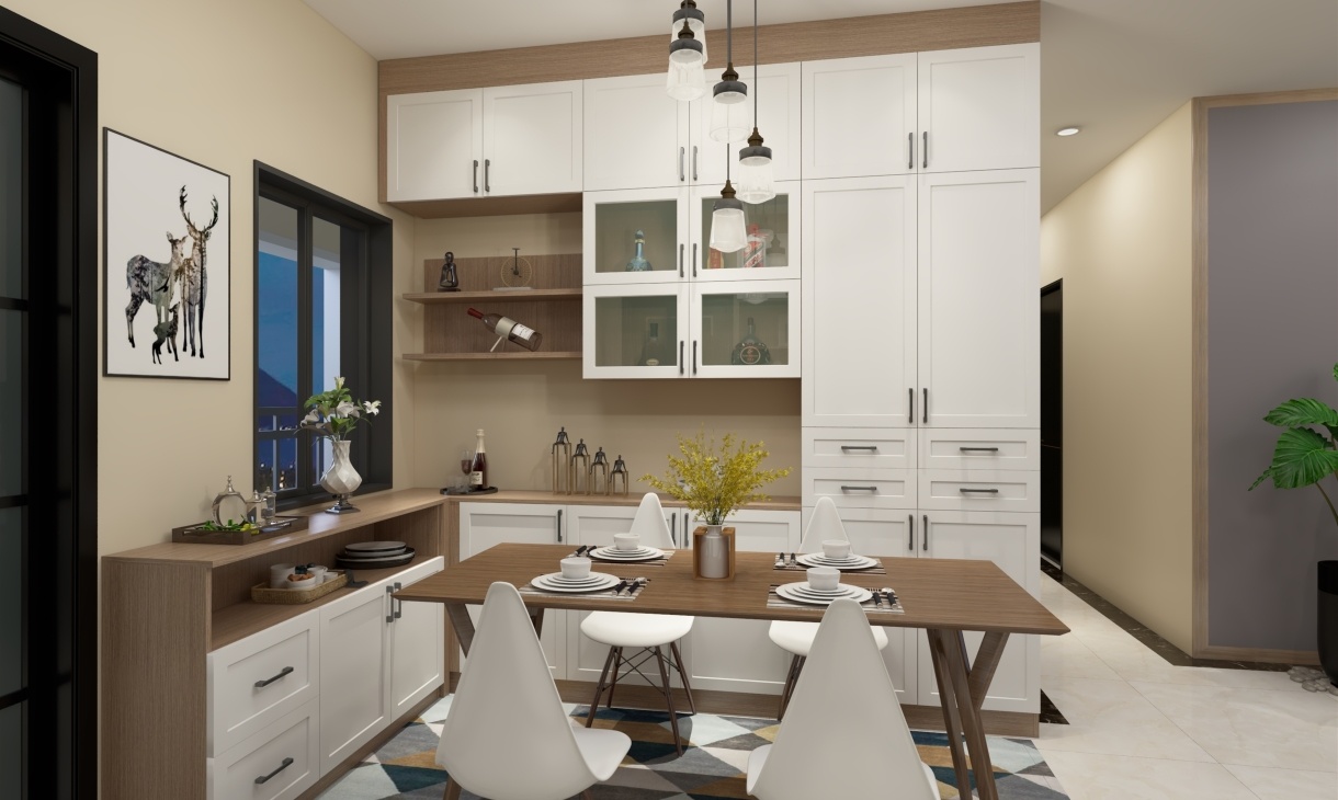 客餐廳不只是一個用餐區域還是休閑區域,收納柜、椅子等設計處處顯示著細節,又滿足了美觀需求,總體以現代設計為主,簡約大方,細看多彩。