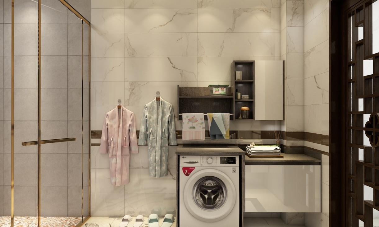 遵循了設計中簡約卻不簡單的法則,色彩與材質互相搭配,裝飾品與自然豐富點綴,干濕分離,顯得格外簡潔,定制的浴室柜,超強收納空間,滿足你的所有需求。