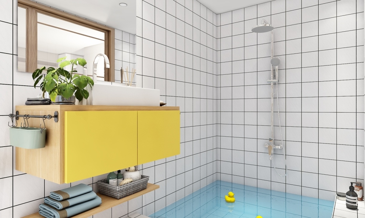 衛(wèi)生間采用白瓷磚+檸檬黃的色彩搭配,在白色起到視覺擴大效果的同時,檸檬黃的清新也點綴進(jìn)來,使小空間富有生氣。由于衛(wèi)生間在搭建的高臺之上,屋主也可以體驗專為小戶型打造的嵌入式浴缸帶來的舒適享受。