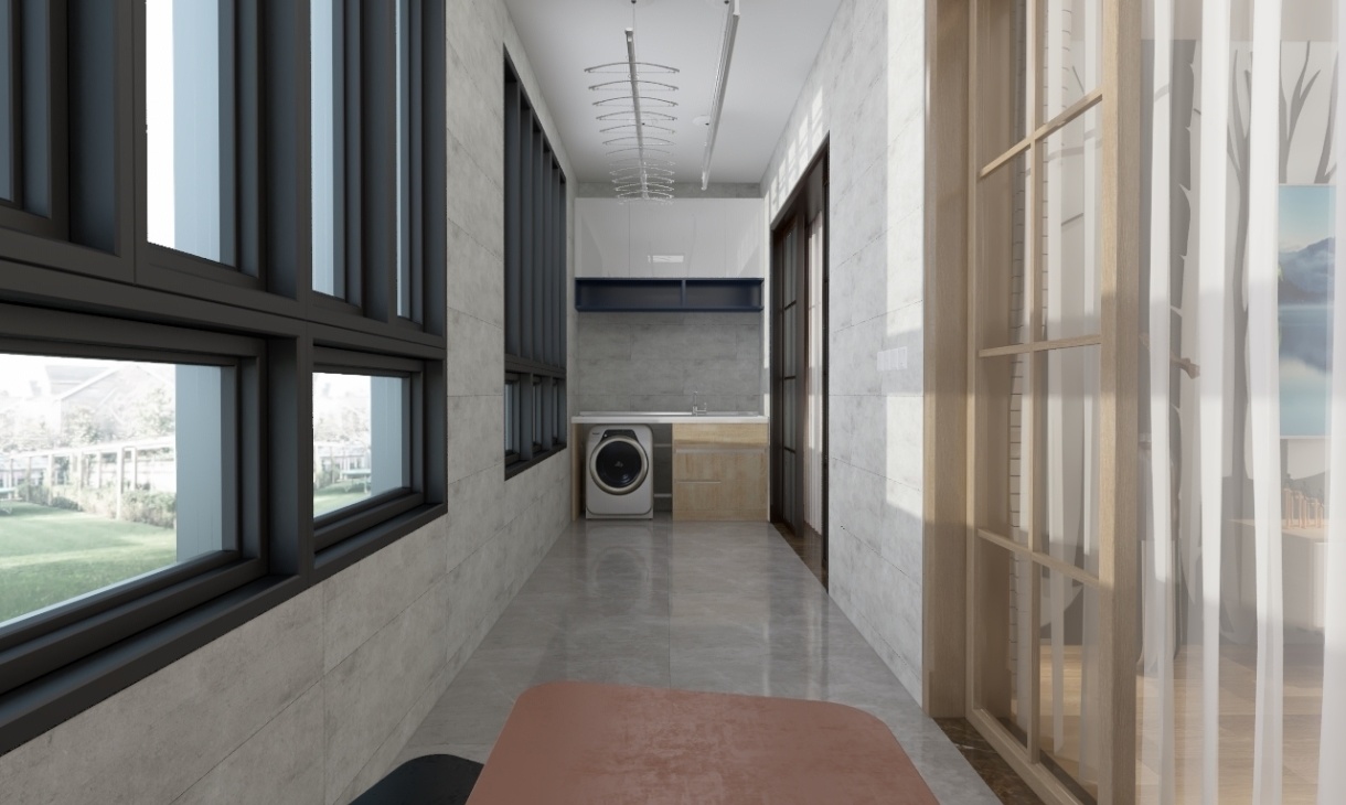 陽臺不僅是為了滿足基本需求,在此設計里,采用整面陽臺柜奠定了空間低調的質感,巧妙利用兩者之間的距離,分配不同功能,一邊可作為休閑陽臺,另一邊為生活陽臺,讓空間更加舒適。