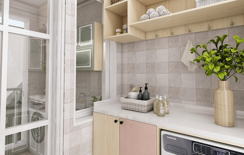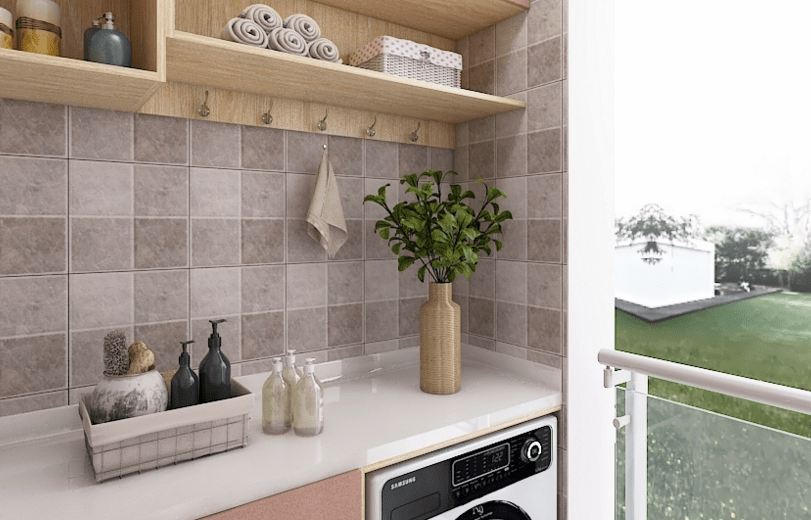 小陽臺(tái)主要用于洗衣,墻上鋪著淡粉紫色的磚塊,結(jié)合女主人為家庭貢獻(xiàn)的心情,空間里充滿溫馨,讓人一見傾心。