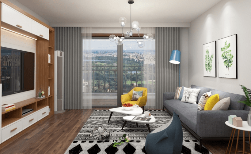 整體設計風格定位為北歐風格,以靚麗的色彩和自然的原木色為設計的主要元素,意在營造一種簡單恬靜的居家環境。白色的門板融入簡潔的線條配以柔和的原木色,帶來明快時尚的視覺效果,嵌入式玄關柜使得空間平整,視野更開闊。客餐廳以過道劃分動靜空間,休息活動互不干擾。