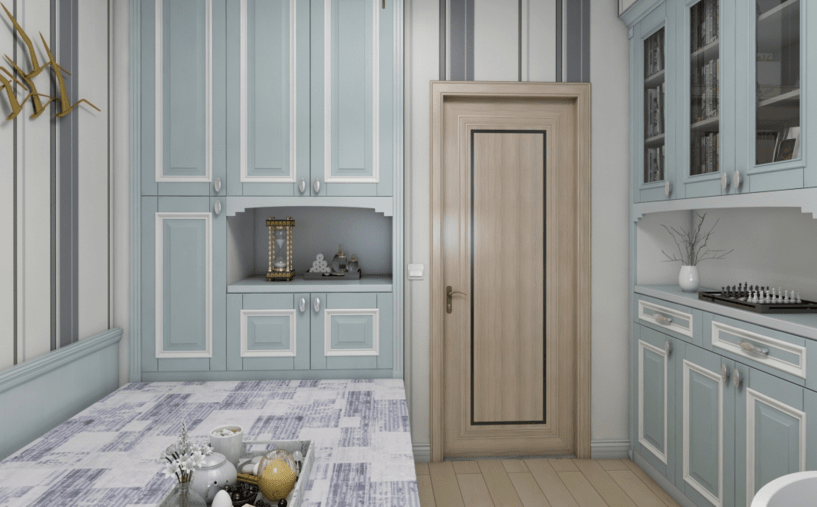 整體設(shè)計(jì)風(fēng)格定位為北歐風(fēng)格,以靚麗的色彩和自然的原木色為設(shè)計(jì)的主要元素,意在營造一種簡(jiǎn)單恬靜的居家環(huán)境。原木色的門板融入簡(jiǎn)潔的線條配以柔和的淺藍(lán)色,帶來明快時(shí)尚的視覺效果。