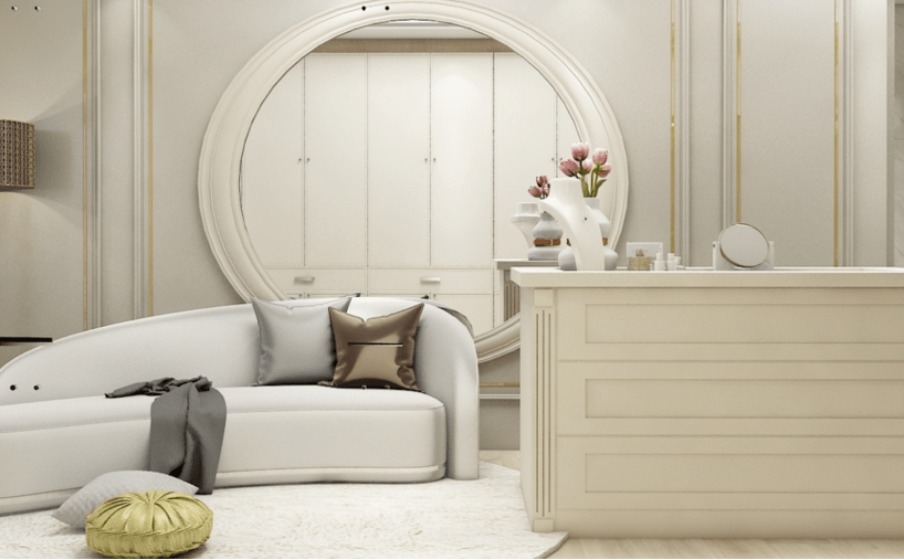 造型上選用永不過時的米白,彰顯經久不衰的氣質美感;凹凸有致的膜壓門板造型,極簡線條,勾勒出視覺上的層次感,排列有序的衣柜讓空間彰顯與生俱來的高級感,直抵人心的家居美學,如同畫作般美麗,遵循了設計中簡約卻不簡單的法則,色彩與材質互相搭配,裝飾品與自然豐富點綴,顯得美好而溫暖。