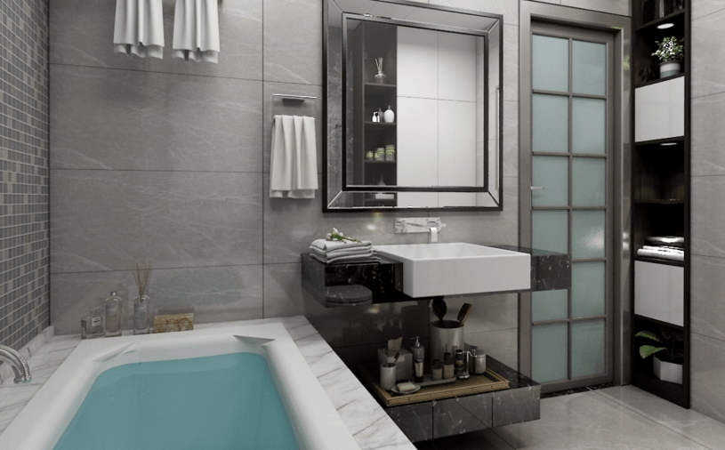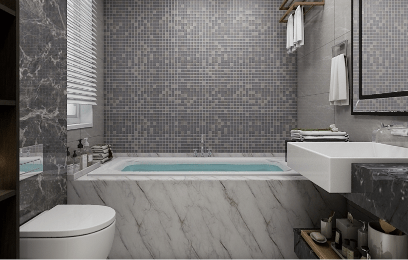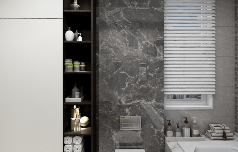 沒有黑的剛硬,也沒有白的純粹,帶著悠悠之美,也泛著柔和的光,灰色馬賽克的墻體鋪陳,架構(gòu)出衛(wèi)生間的空間,融合人體工程學(xué)讓每個(gè)空間與生活息息相關(guān)的,這就是生活美學(xué)。