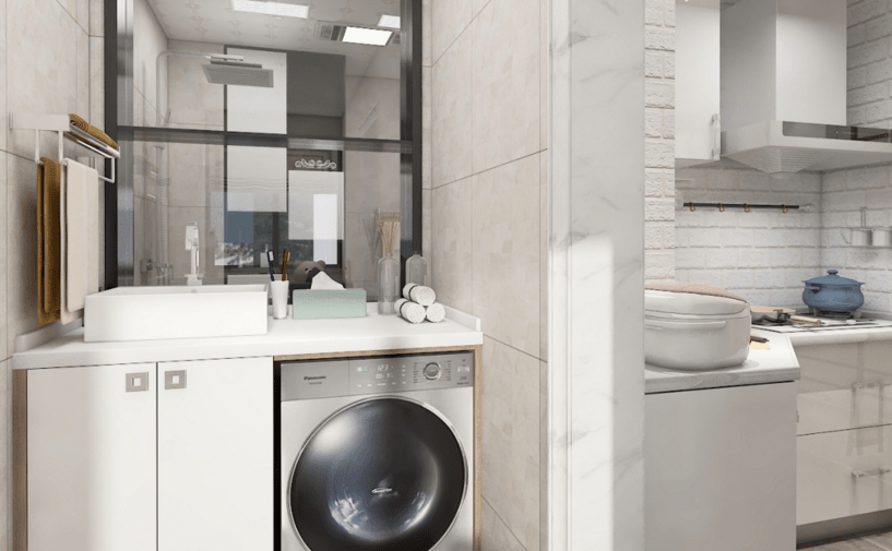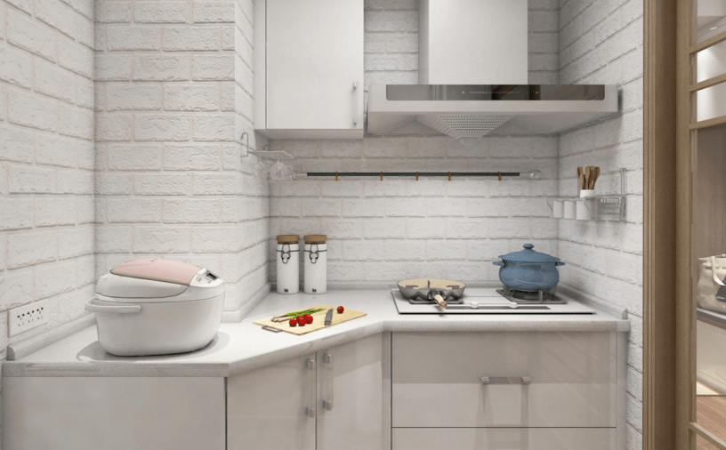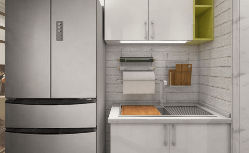 廚房雖小,五臟俱全,小公寓,大收納。整體用白色烤漆材質,延伸空間感,使得空間看起來明亮寬敞。