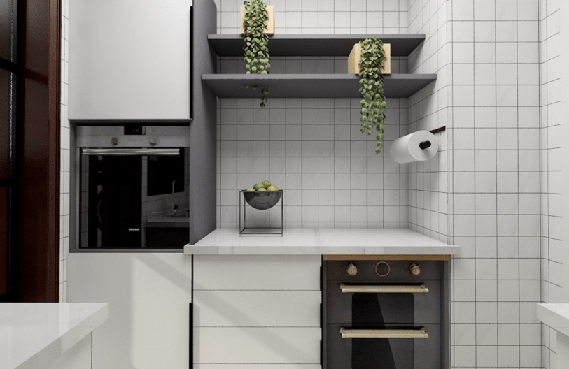 廚房以黑白灰為主,適合喜歡簡約方式的年輕人,不僅看起來非常舒服,而且空間感非常好,櫥柜的設(shè)計(jì),以及洗-切-炒動線合理可以滿足女主喜歡烹飪的需求。合理分配空間,不會導(dǎo)致使用空間布局錯(cuò)亂,從而影響廚房潔凈度。