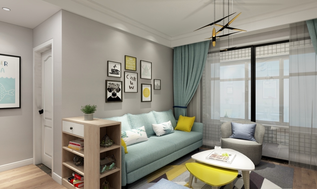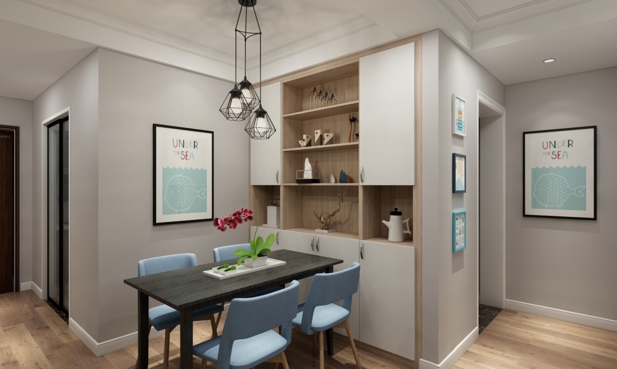 北歐風格輕松簡約,整體空間干凈,簡單,給人眼前一新的感覺,在設計手法摒棄繁瑣,主要體現在餐廳家具的選擇上,采用最簡單的亮黃色桌子、藍色椅子,簡潔流暢的線條,明朗輕快。