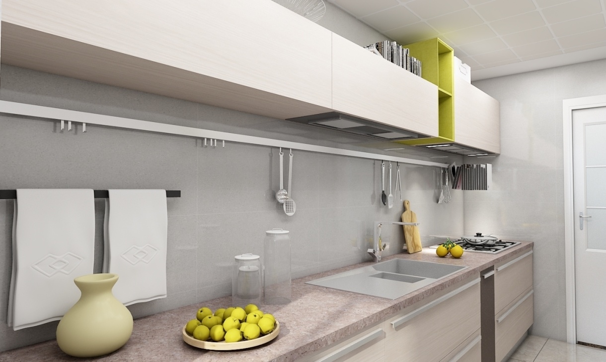 用淺色系作為主色調,墻體的灰色和柜提到原木色都十分有質感,搭配黃綠色點綴,一種高級感在空間展開,保留極簡格調,除去繁雜,只保留純粹的簡。