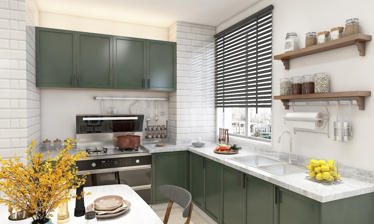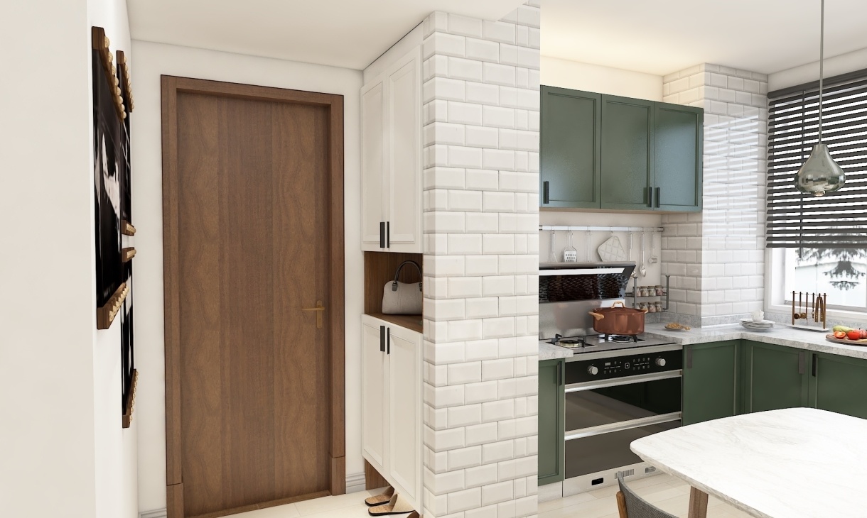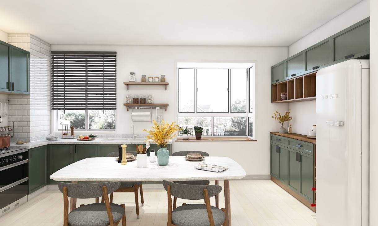 廚房以簡(jiǎn)潔質(zhì)感為主,適合喜歡簡(jiǎn)單,有品位的年輕人,不僅看起來非常舒服,而且空間感非常好,橄欖綠櫥柜的設(shè)計(jì),洗-切-炒動(dòng)線合理可以滿足女主喜歡烹飪的需求。 同時(shí)不會(huì)因?yàn)槿蟓h(huán)節(jié)使用空間布局錯(cuò)亂,影響廚房潔凈度。廚房邊的餐桌,既增添了格調(diào),備餐更加方便,合理的利用空間。