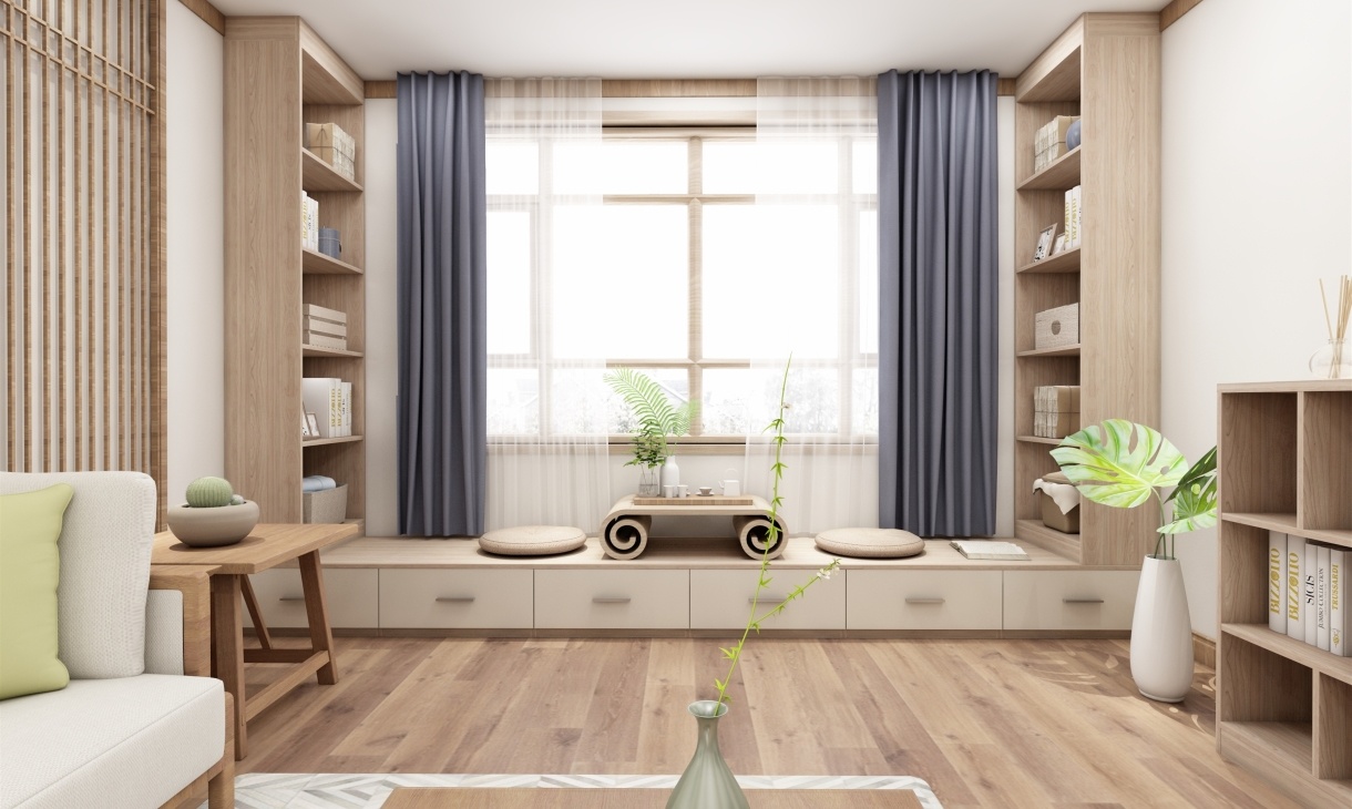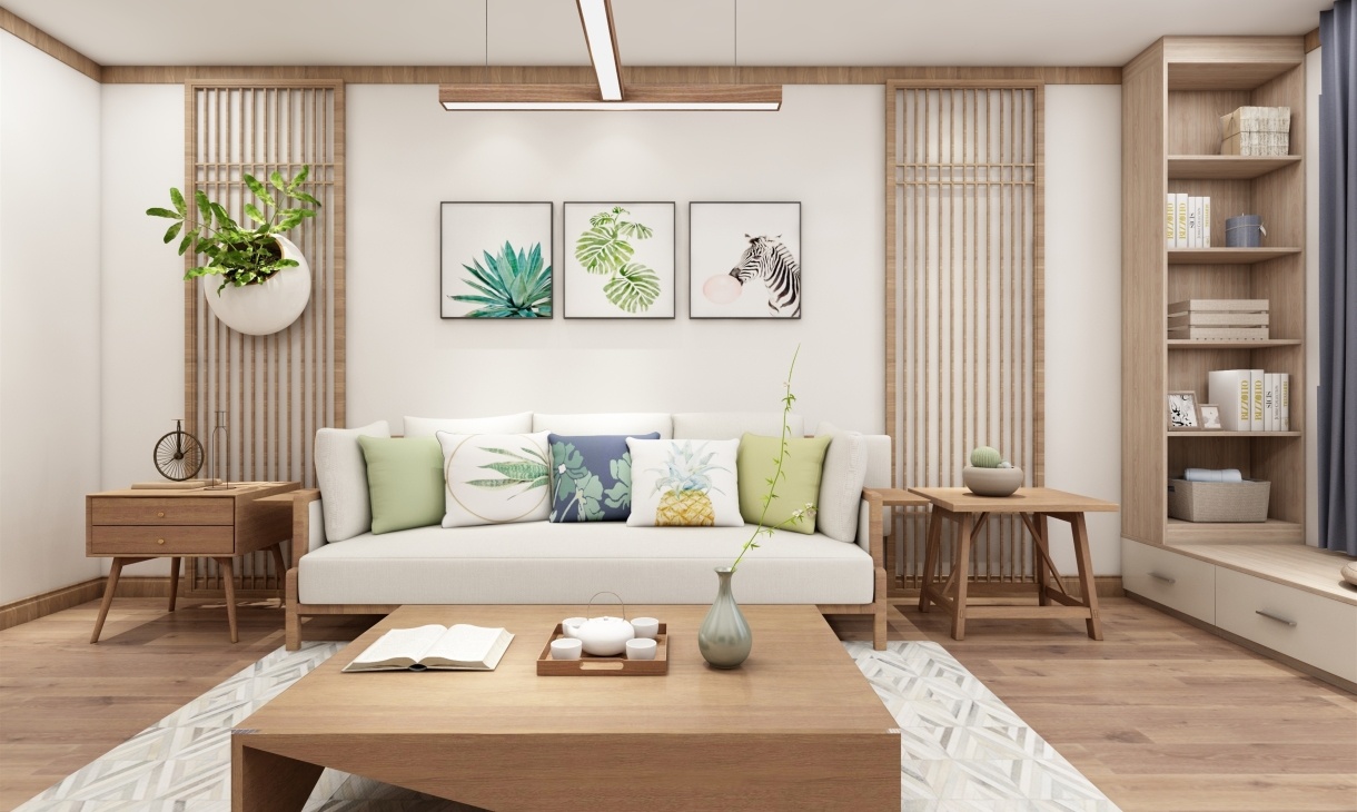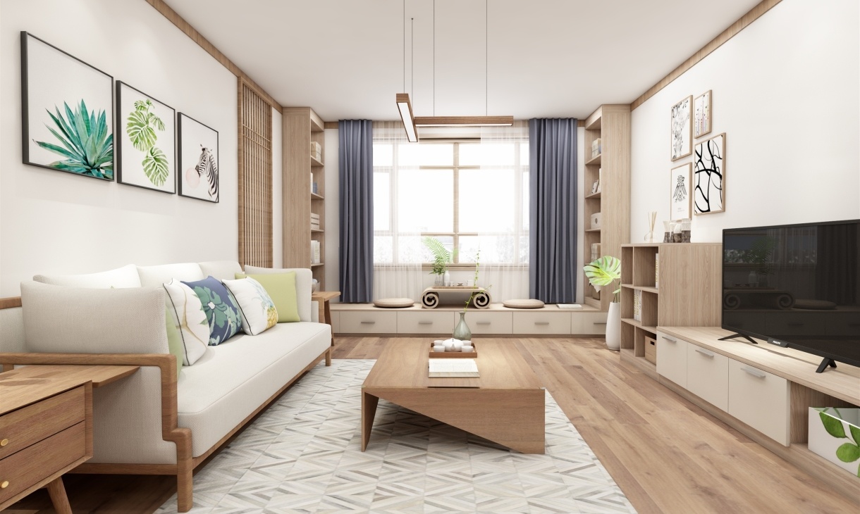 客廳設計一組電視柜,側面設計一組矮柜作為休閑區域,閑暇時,泡壺茶,和家人聊天或者靜靜的看本書,悠閑愜意。原木色的家具搭配綠植讓空間清新舒適,讓人卸下疲憊,擁抱自然。